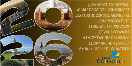 Jean-Marc THIMONIER, Maire de la commune de Sainte-Consorce et les élus du conseil municipal vous présentent leurs meilleurs voeux et vous convient à la cérémonie des voeux.